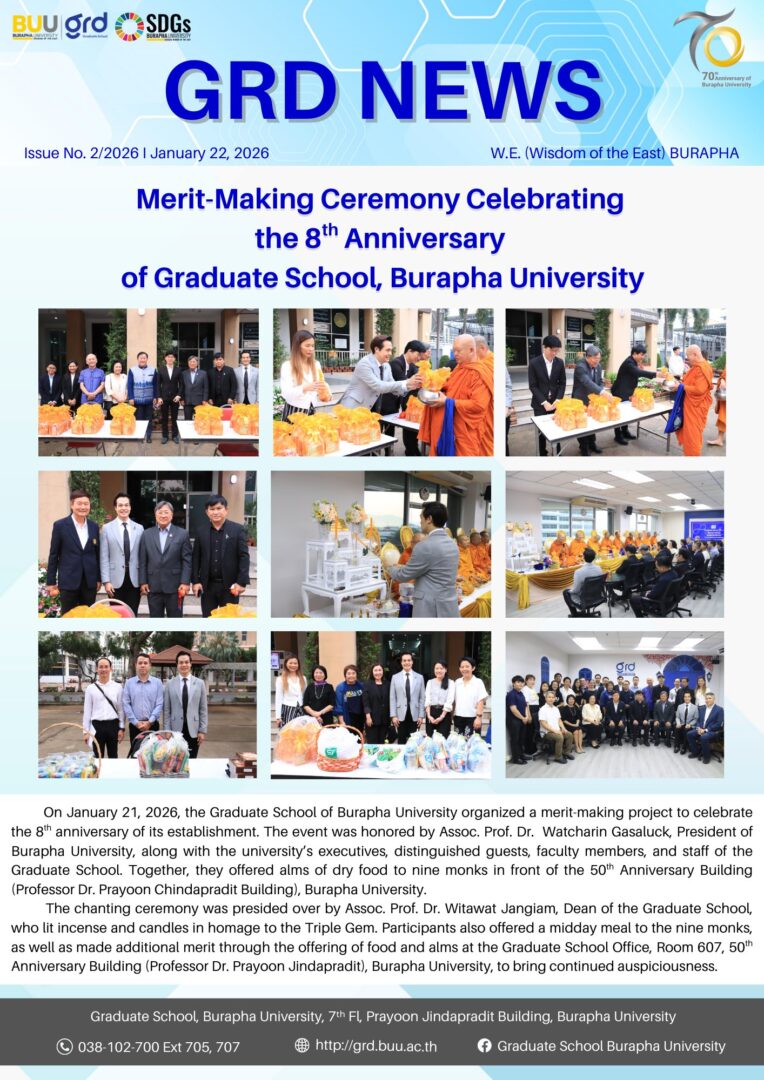 ในวันพุธที่ 21 มกราคม พ.ศ. 2569 บัณฑิตวิทยาลัย มหาวิทยาลัยบูรพา จัดงานวันคล้ายวันสถาปนา บัณฑิตวิทยาลัย มหาวิทยาลัยบูรพา ปีที่ 8