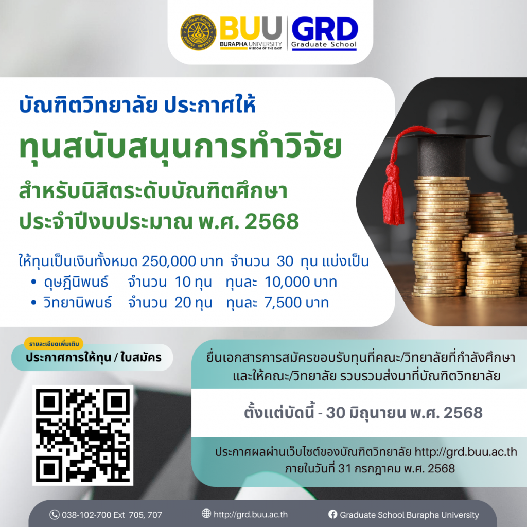 ทุนสนับสนุนการทำวิจัย สำหรับนิสิตระดับบัณฑิตศึกษา ประจำปีงบประมาณ พ.ศ. 2568