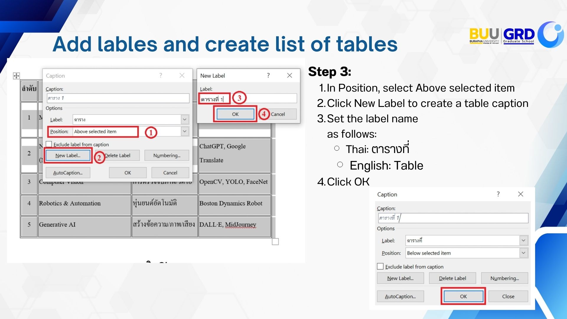 Add lables and create list of tables