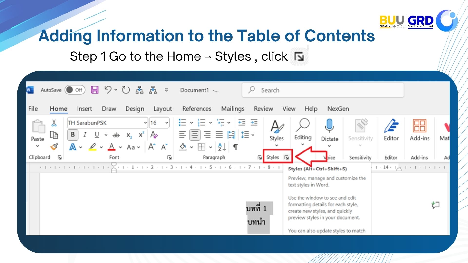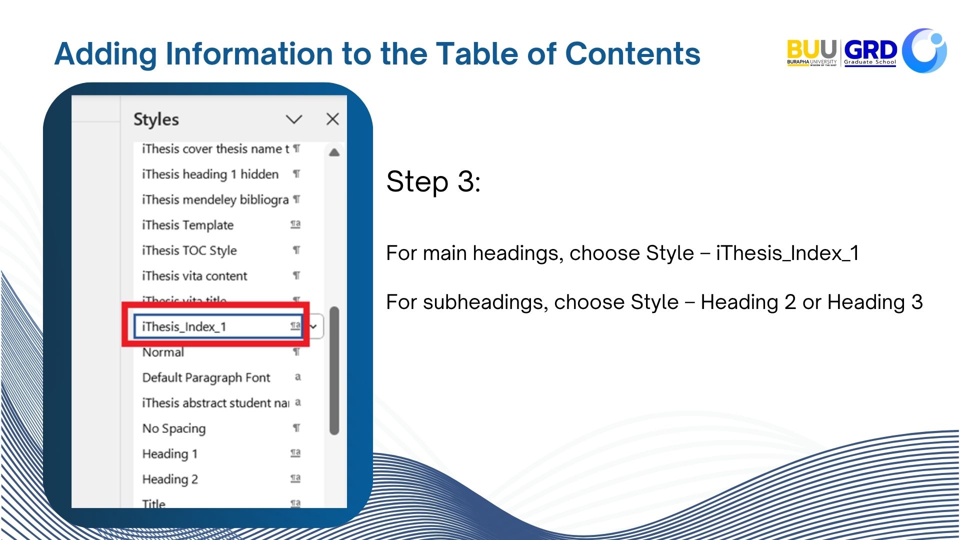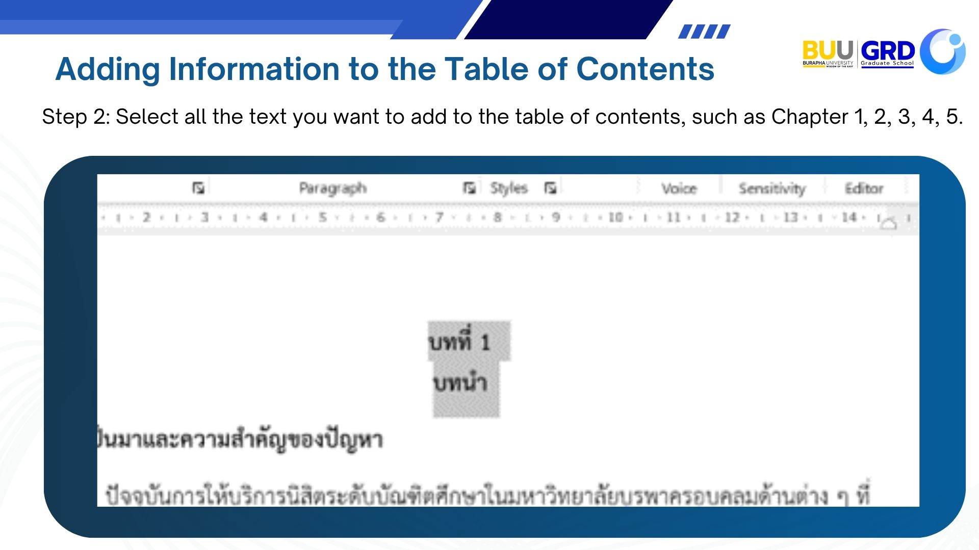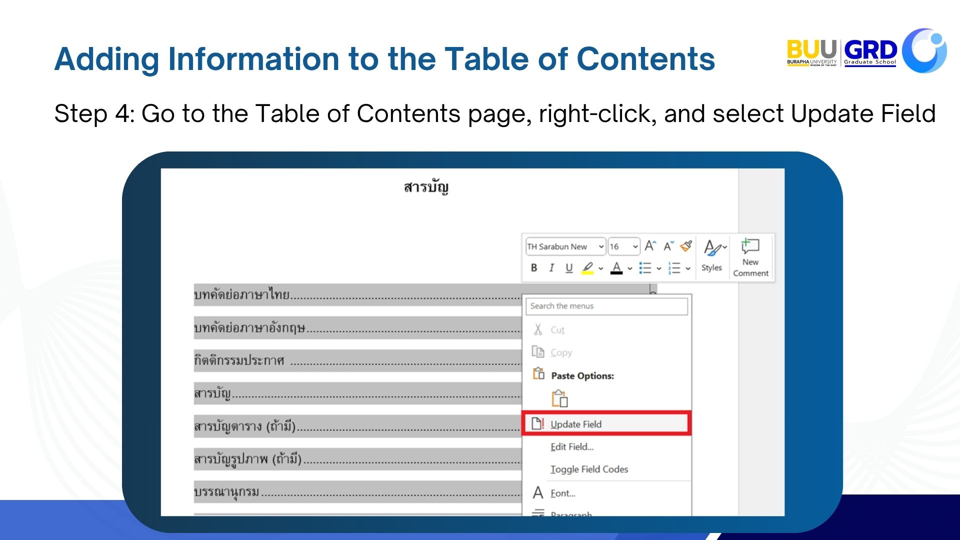 Adding Information to the Table of Contents