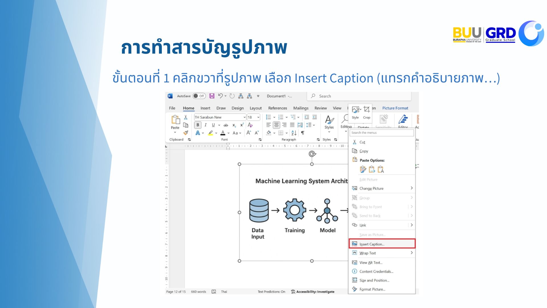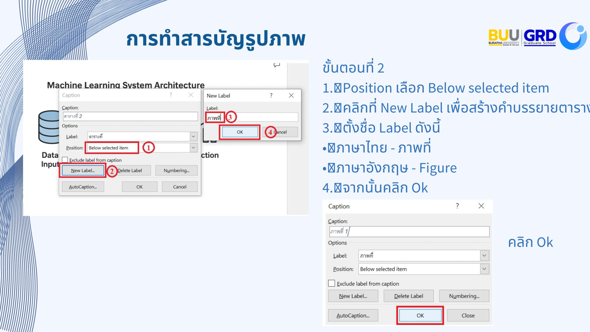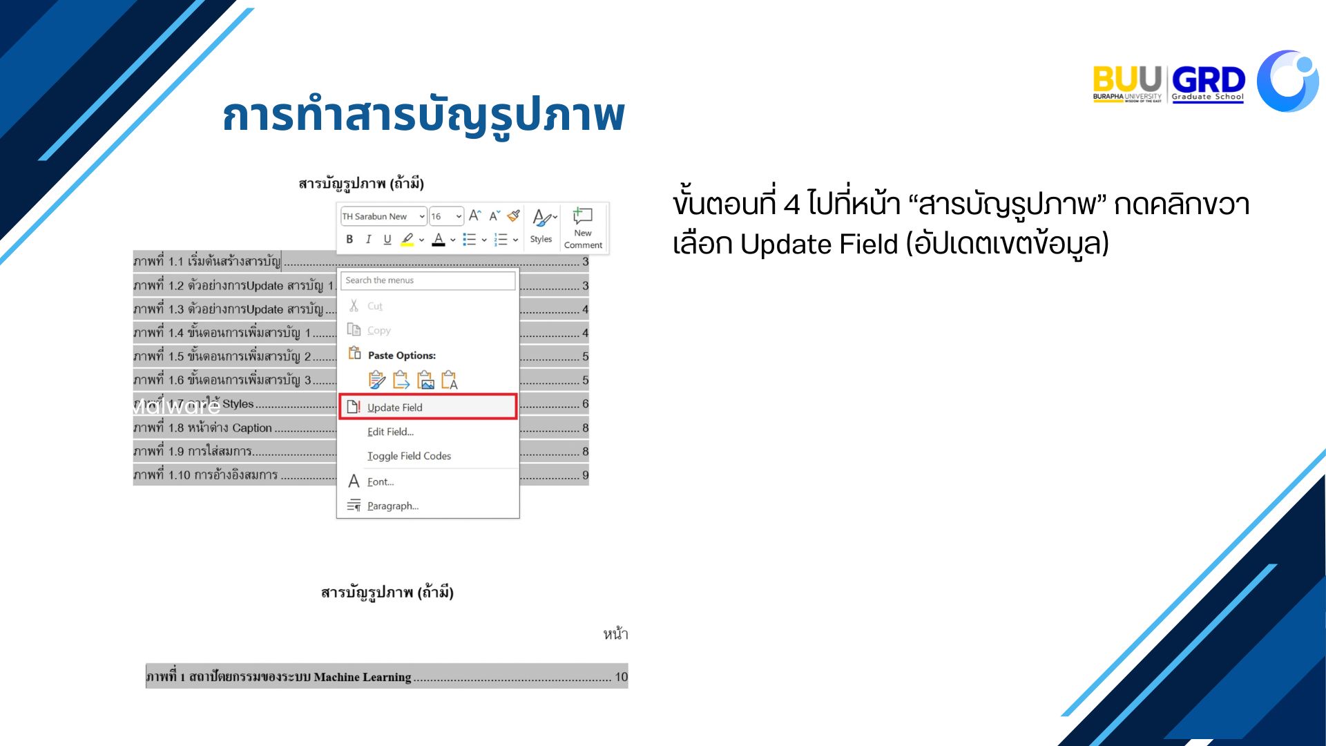 การใส่คำอธิบายและการสร้างหน้าสารบัญภาพ