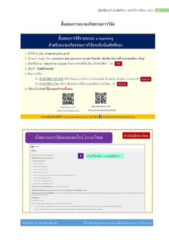 คู่มือนิสิตระดับบัณฑิตศึกษา ประจ าปีการศึกษา 2565 24 ขั้นตอนการอบรมจริยธรรมการวิจัย บัณฑิตวิทยาลัย มหาวิทยาลัยบูรพา เป็นเลิศมาตรฐาน ผสานความร่วมมือยึดถือคุณธรรม ก้าวน าบริการ